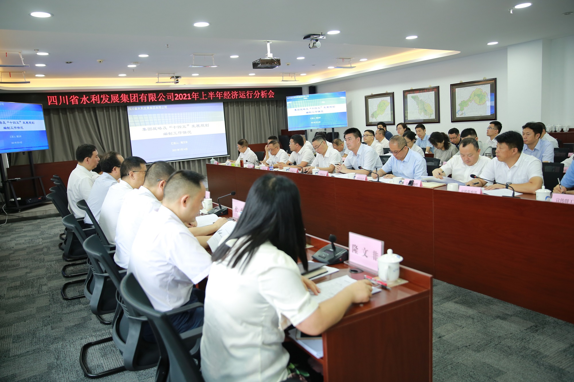 2021年7月14日,四川省水利發(fā)展集團有限公司召開2021年上半年經(jīng)濟運行分析會,總結(jié)分析2021年上半年經(jīng)濟運行情況,通報“十四五”規(guī)劃編制工作情況,研究部署下半年經(jīng)營工作。集團黨委書記、董事長鐘杰主持會議,集團領(lǐng)導(dǎo)班子成員尹曉東、鄔清富、王剛強、代勇、黃永沾、吳軍、羅國書、隆文非出席會議,集團總部各部門負責人和下屬企業(yè)主要負責人、及部門負責人參加會議。