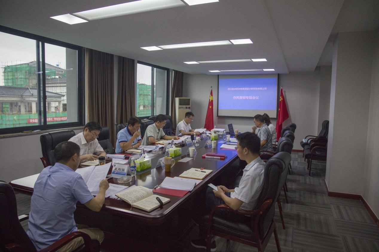 8月5日,四川省水利水電勘測設計研究院有限公司黨委召開作風整頓專題會,再次深入學習領會郭亨孝廳長5月13日在廳黨組中心學習組黨史學習教育專題學習(擴大)會議上的報告和7月16日在廳機關職工大會上的講話精神,認真對照“十大現象”和“六種表現”進行檢視查擺。設計院公司黨委書記、董事長王剛強主持會議,公司在家班子成員參會。
