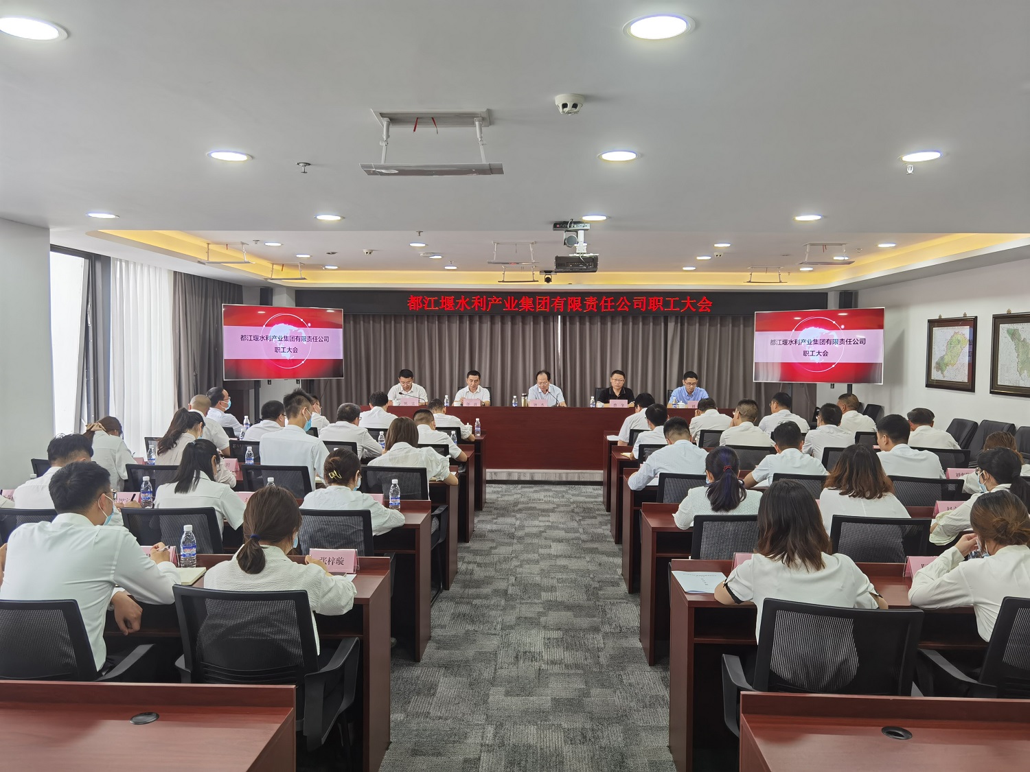 2021年9月7日,都江堰水利產(chǎn)業(yè)集團有限責(zé)任公司在公司總部召開職工大會。省水發(fā)集團黨委書記、董事長兼產(chǎn)業(yè)公司黨委書記、董事長鐘杰,省水發(fā)集團組織人力資源部部長曹奎,省水發(fā)集團經(jīng)營管理部部長劉華出席大會。