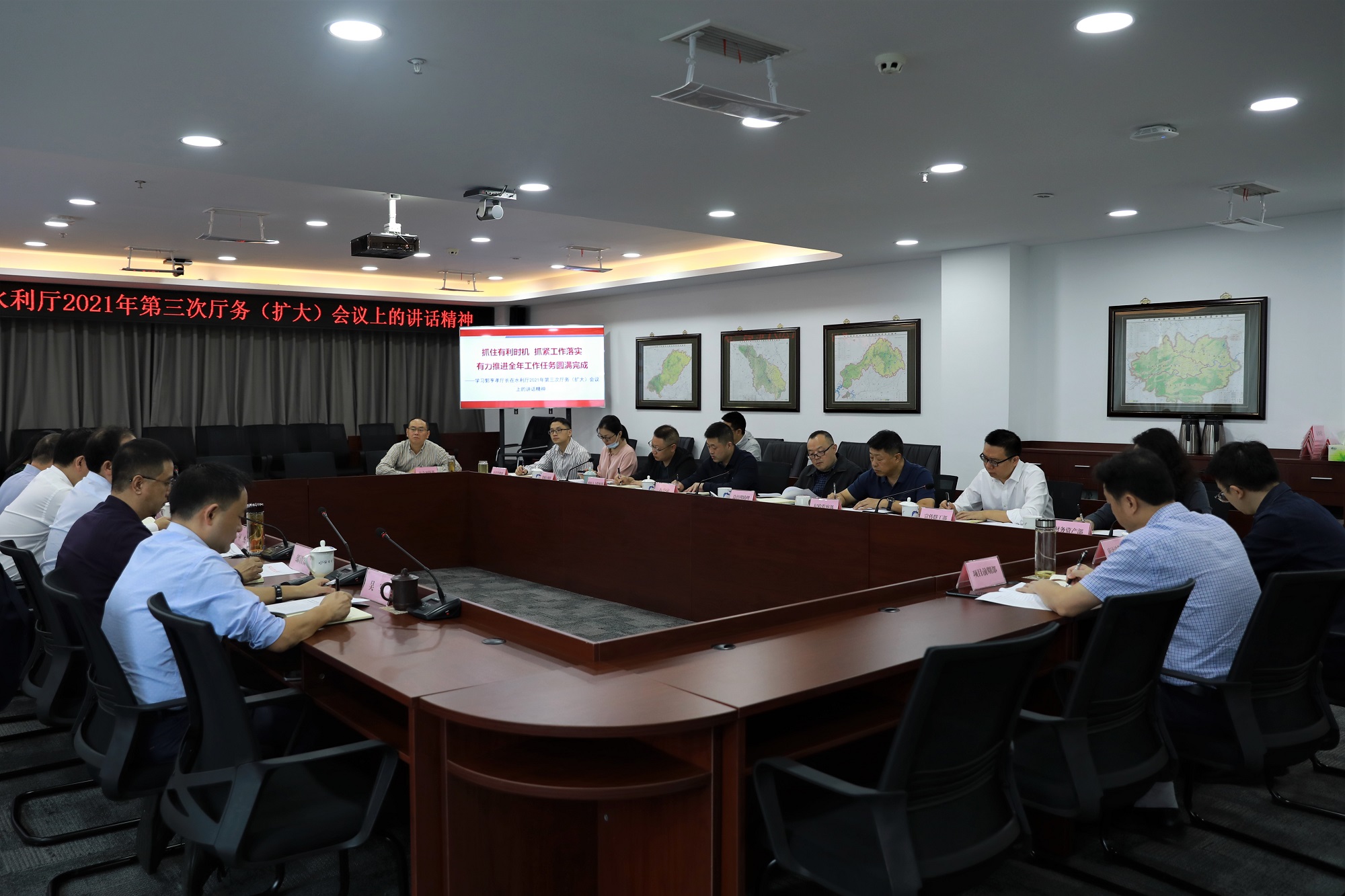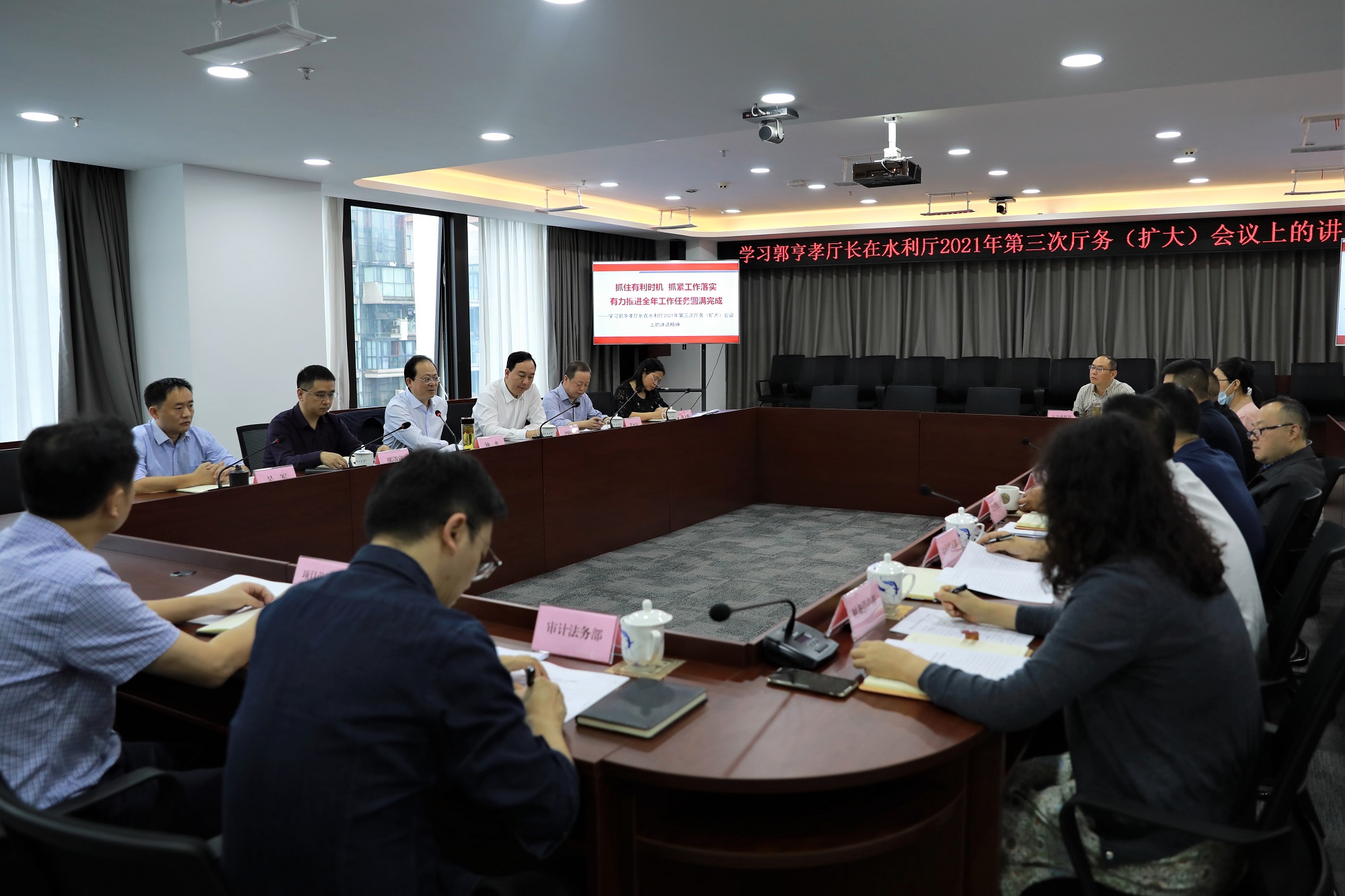 9月15日,水利廳召開2021年第三次廳務(wù)(擴(kuò)大)會(huì)議,郭亨孝廳長(zhǎng)以“抓住有利時(shí)機(jī) 抓緊工作落實(shí) 有力推進(jìn)全年工作任務(wù)圓滿完成”為主題,重點(diǎn)回顧了今年以來廳黨組帶領(lǐng)全廳以“組合拳”形式推進(jìn)的十項(xiàng)工作,全面梳理了落實(shí)“3226”工作思路20個(gè)方面落實(shí)落細(xì)的具體工作思路和方法,同時(shí)對(duì)推動(dòng)第四季度工作適度轉(zhuǎn)段提出了要求。郭廳長(zhǎng)的講話多處提及水發(fā)集團(tuán),對(duì)集團(tuán)當(dāng)前和今后一個(gè)階段的工作具有十分重要的指導(dǎo)意義。