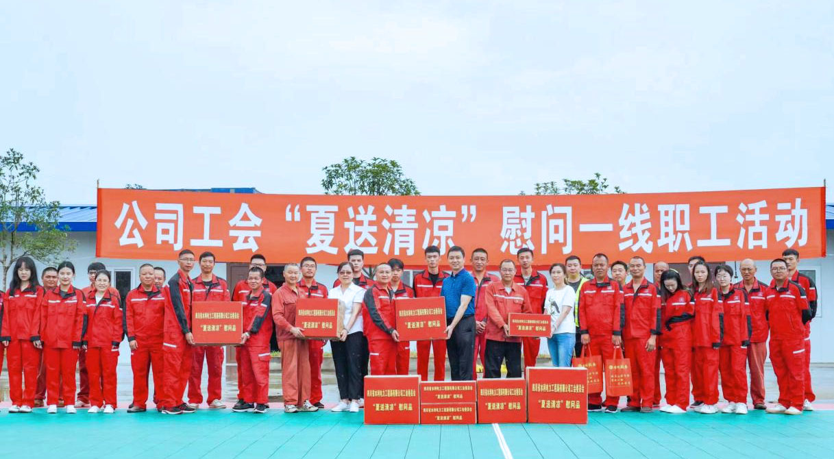 8月5日,公司黨委委員、職工董事、工會(huì)主席夏永紅,紀(jì)委委員、工會(huì)副主席付麟麗,工會(huì)辦公室主任秦利一行到青神虎渡溪航電樞紐工程項(xiàng)目開展“夏送清涼”慰問(wèn)及工作調(diào)研,為一線職工送上防暑降溫物品,帶來(lái)組織的關(guān)懷。