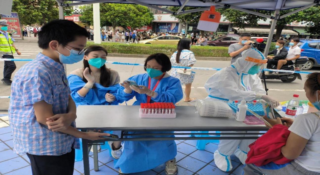 供水黨支部部分黨員到核酸檢測點參加測溫掃碼、現(xiàn)場秩序維護