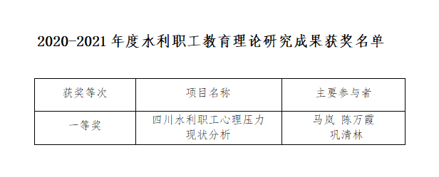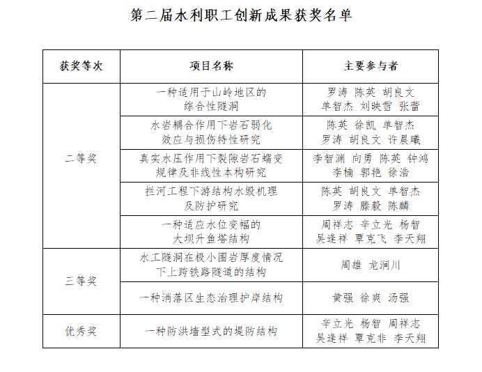 10月26日,中國水利教育協(xié)會在官網(wǎng)發(fā)布了第二屆水利職工創(chuàng)新成果評選結果和2020-2021年度全國水利職工教育理論研究成果評選結果的公告,集團多名職工在評選中獲獎。