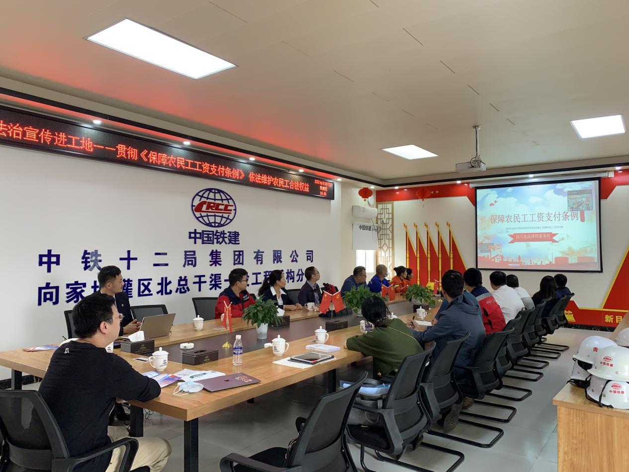 本次活動采取主會場和分會場相結合的方式,全面覆蓋于各標段的參建單位和農民工,邀請法律顧問黃佰韓律師對《農民工工資支付條例》進行全面解讀。黃律師圍繞全力做好保障農民工工資支付工作,指導建設工程單位規(guī)范用工,保障農民工按時足額獲得工資,維護農民工權益,構建和諧穩(wěn)定的勞工關系等內容,現(xiàn)場就農民工關心的實際問題進行了互動解答。同時,活動還通過觀看普法視頻、發(fā)放宣傳資料、張貼海報等形式,積極引導農民工增強法律意識,筑牢法治思維。