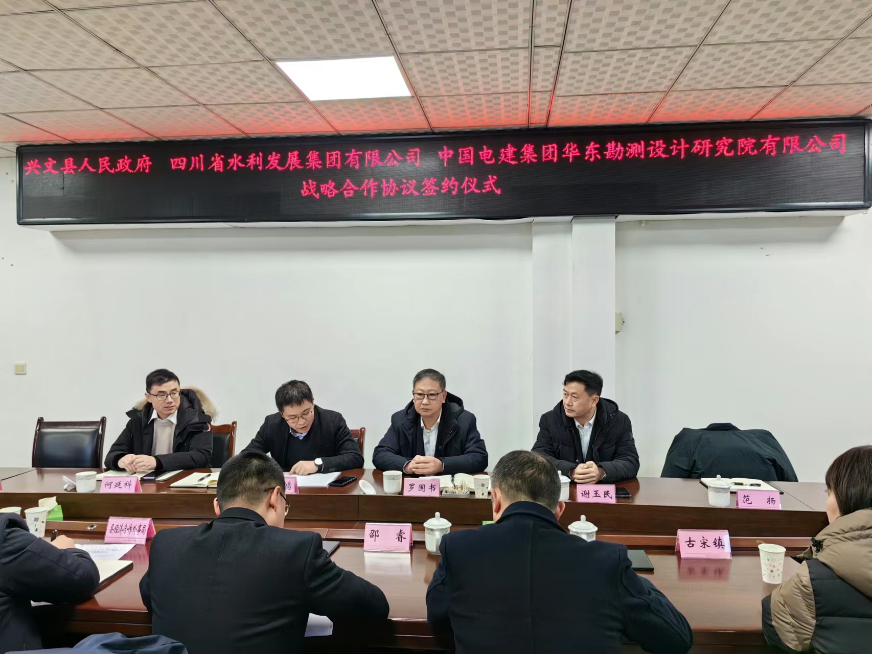 1月16日,集團與興文縣人民政府、中電建華東院戰(zhàn)略合作簽約儀式在興文縣人民政府三樓會議室舉行。集團董事羅國書、興文縣人民政府副縣長邵睿、中國電建集團華東勘測設(shè)計研究院有限公司西南區(qū)域總部總經(jīng)理張發(fā)鴻出席儀式。