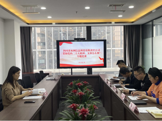 1月31日,投資公司下屬水網(wǎng)科技公司黨支部為深入貫徹落實(shí)黨的二十大會議精神,組織專題黨課教育活動,結(jié)合經(jīng)營發(fā)展實(shí)際,開年即謀劃公司全年重點(diǎn)工作。黨支部書記馬璐以《貫徹黨的二十大精神,支部怎么做?》為主題,圍繞黨的二十大報(bào)告和2023年全國水利工作會議的精神為公司全體黨員職工講授了專題黨課。