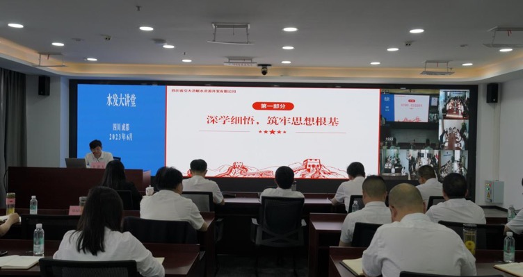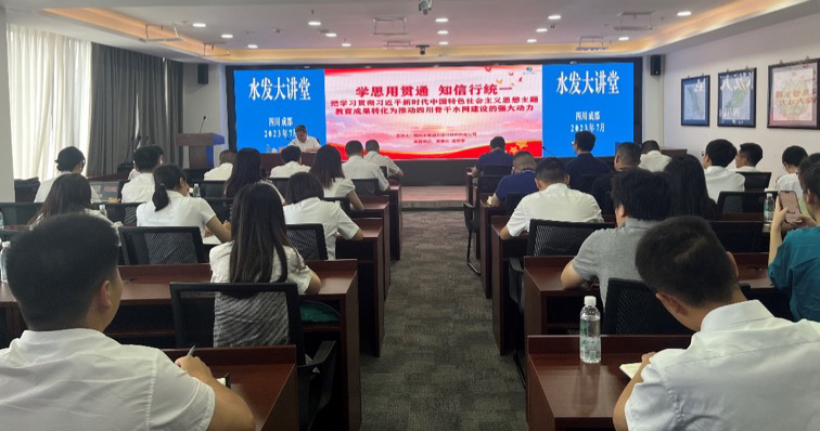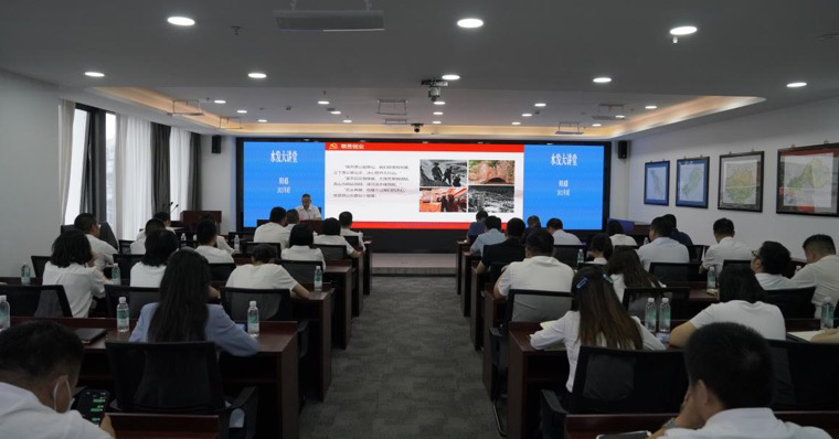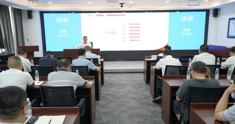 自今年6月以來(lái),水發(fā)集團(tuán)在落實(shí)水利廳“學(xué)思想見行動(dòng) 做新時(shí)代水利人”主題活動(dòng)中,緊扣主題教育各項(xiàng)要求,聯(lián)系集團(tuán)實(shí)際,創(chuàng)新啟動(dòng)了主題教育1+7“水發(fā)大講堂”。集團(tuán)黨委精心謀劃,集團(tuán)領(lǐng)導(dǎo)率先垂范,以集團(tuán)黨委為中心,集團(tuán)黨委書記、董事長(zhǎng)鐘杰以《銘記光輝歷史 堅(jiān)守初心使命 矢志擔(dān)當(dāng)作為 建設(shè)四川水網(wǎng)》為題講授專題黨課,從銘記光輝歷史、不忘走過的路,堅(jiān)守初心使命、堅(jiān)定前行的路和矢志擔(dān)當(dāng)作為、走好腳下的路三個(gè)方面系統(tǒng)地闡述了集團(tuán)成立至今的發(fā)展歷程,推動(dòng)跨越發(fā)展全面崛起,實(shí)現(xiàn)集團(tuán)關(guān)鍵之年高質(zhì)量發(fā)展。