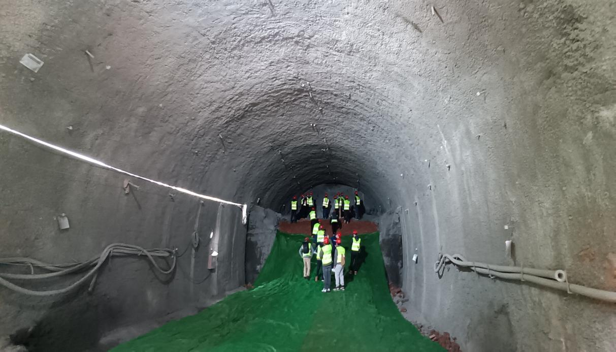 全體人員首先在現(xiàn)場(chǎng)施工人員的帶領(lǐng)下參觀成都軌道交通13號(hào)線一期工程土建7工區(qū)三圣花鄉(xiāng)站施工現(xiàn)場(chǎng),就全國(guó)最大的大跨度中庭無柱弧形拱頂車站施工(幸福梅林站)、淺埋大直徑膨脹性黏土巖隧洞施工、初期支護(hù)、道路防沉降、220KV高壓線下安全防控措施等技術(shù)進(jìn)行了現(xiàn)場(chǎng)交流。