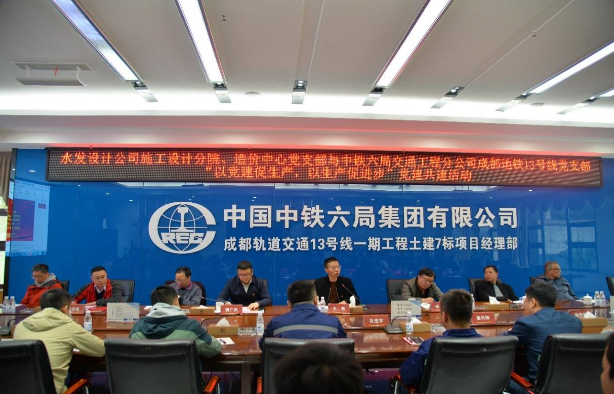 近日,設(shè)計(jì)公司施工設(shè)計(jì)分院黨支部、造價(jià)中心黨支部與中鐵六局交通工程分公司成都地鐵13號(hào)線項(xiàng)目黨支部開展了“以黨建促生產(chǎn),以生產(chǎn)促進(jìn)步”共建活動(dòng)。公司黨委委員、副總經(jīng)理王君同志,副總工程師何平、李自繁同志等30余人參加了此次共建活動(dòng)。