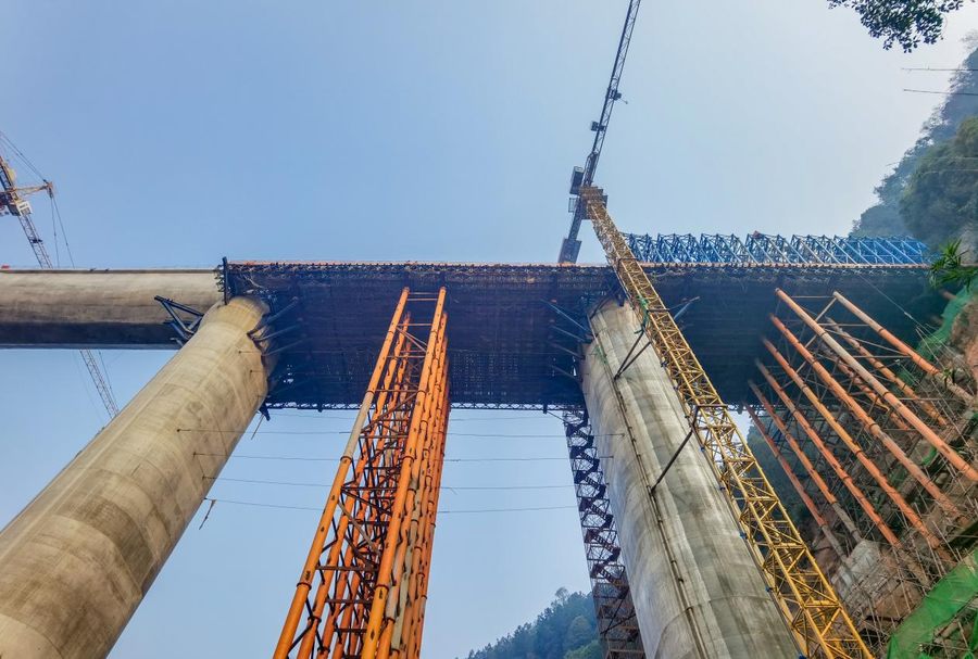 會詩溝渡槽位于宜賓市翠屏區(qū)思坡鎮(zhèn)會詩村,是向家壩灌區(qū)工程北總干渠第二流量段。該渡槽全長240米,共6跨,單跨最高高度為76米,槽身為薄壁U型結(jié)構(gòu),是向家壩灌區(qū)北總干渠一期一步工程最高渡槽,也是項目建設(shè)的重難點控制性工程。