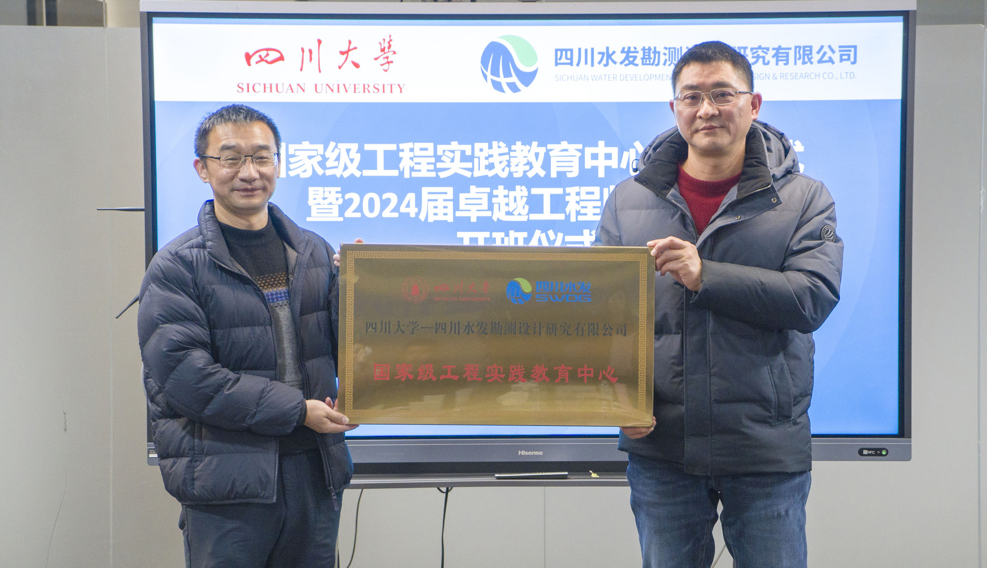 1月4日,國(guó)家級(jí)工程實(shí)踐教育中心揭牌儀式暨2024屆卓越工程師實(shí)踐班開班儀式在四川水發(fā)設(shè)計(jì)公司舉行。四川大學(xué)水利水電學(xué)院副院長(zhǎng)謝紅強(qiáng)、校企導(dǎo)師代表,公司黨委專職副書記、董事楊志宏等領(lǐng)導(dǎo)及相關(guān)部門負(fù)責(zé)人出席儀式。