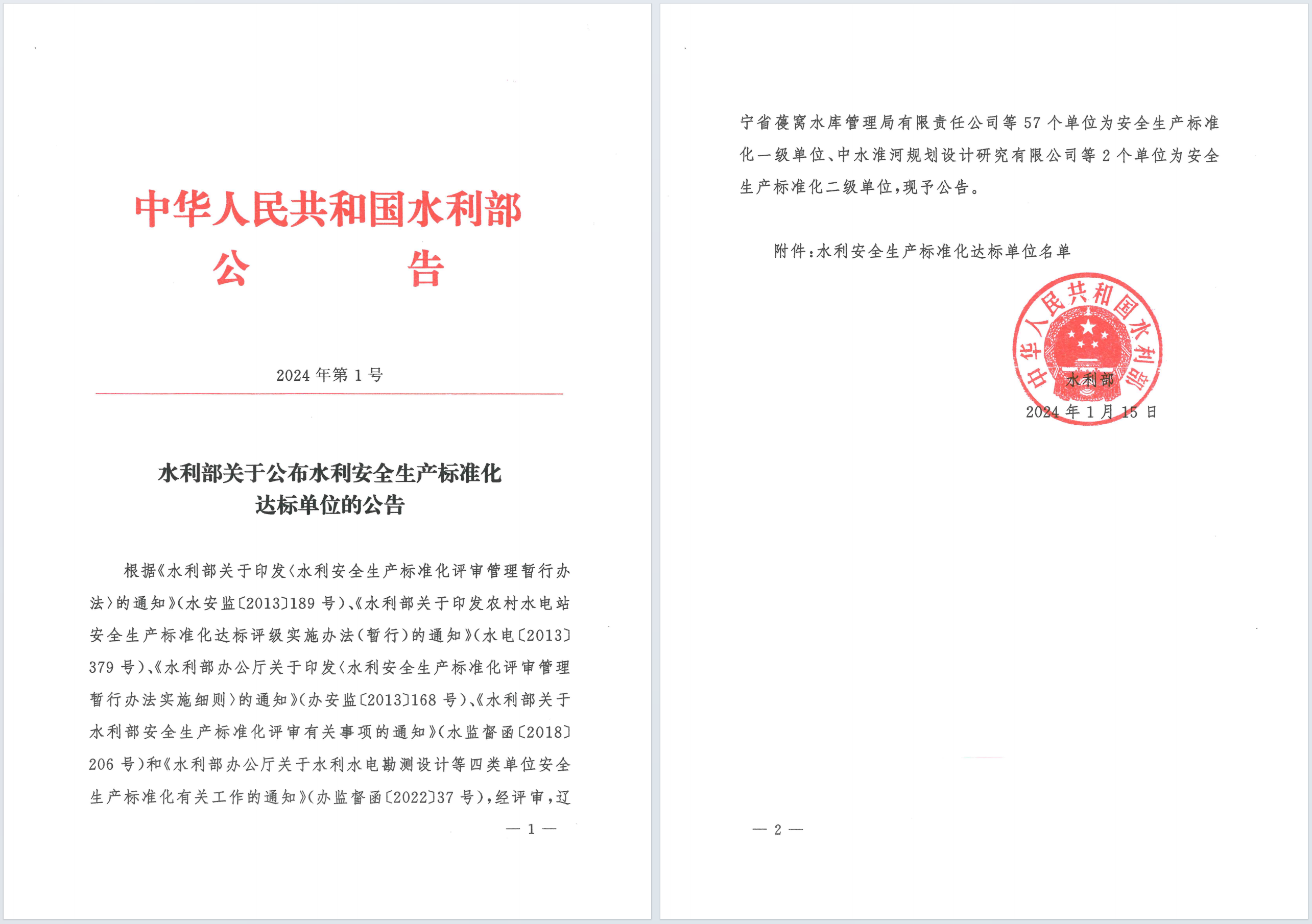 1月15日,集團(tuán)安全生產(chǎn)標(biāo)準(zhǔn)化建設(shè)再傳喜訊,向家壩灌區(qū)公司被水利部評為“水利安全生產(chǎn)標(biāo)準(zhǔn)化一級達(dá)標(biāo)單位”,成為集團(tuán)獲此殊榮的第二家下屬企業(yè)。