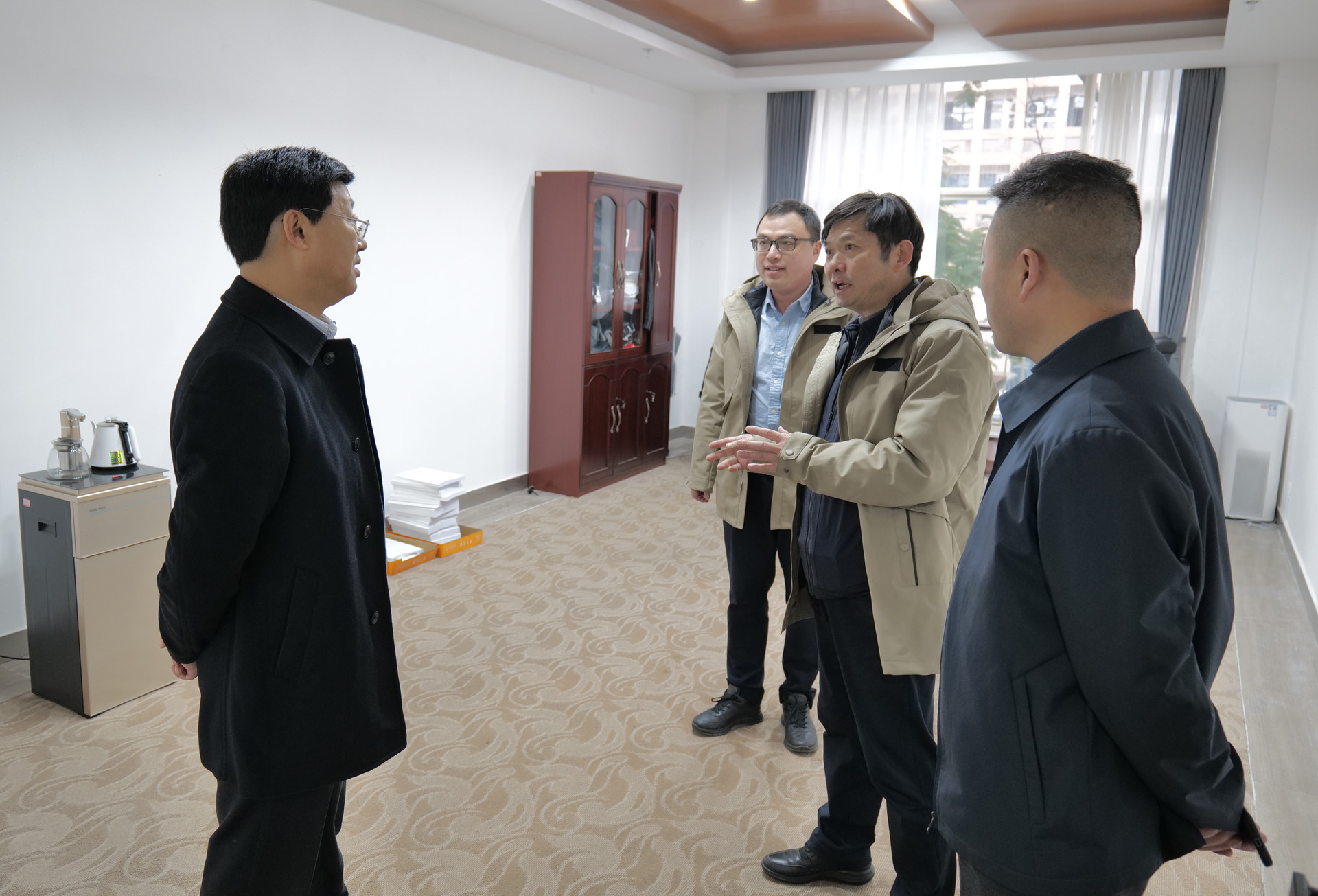 向仕春一行在辦公區(qū)與職工進(jìn)行了親切交流,了解他們的工作、學(xué)習(xí)、生活情況,向困難職工送去了深切的關(guān)懷與慰問。