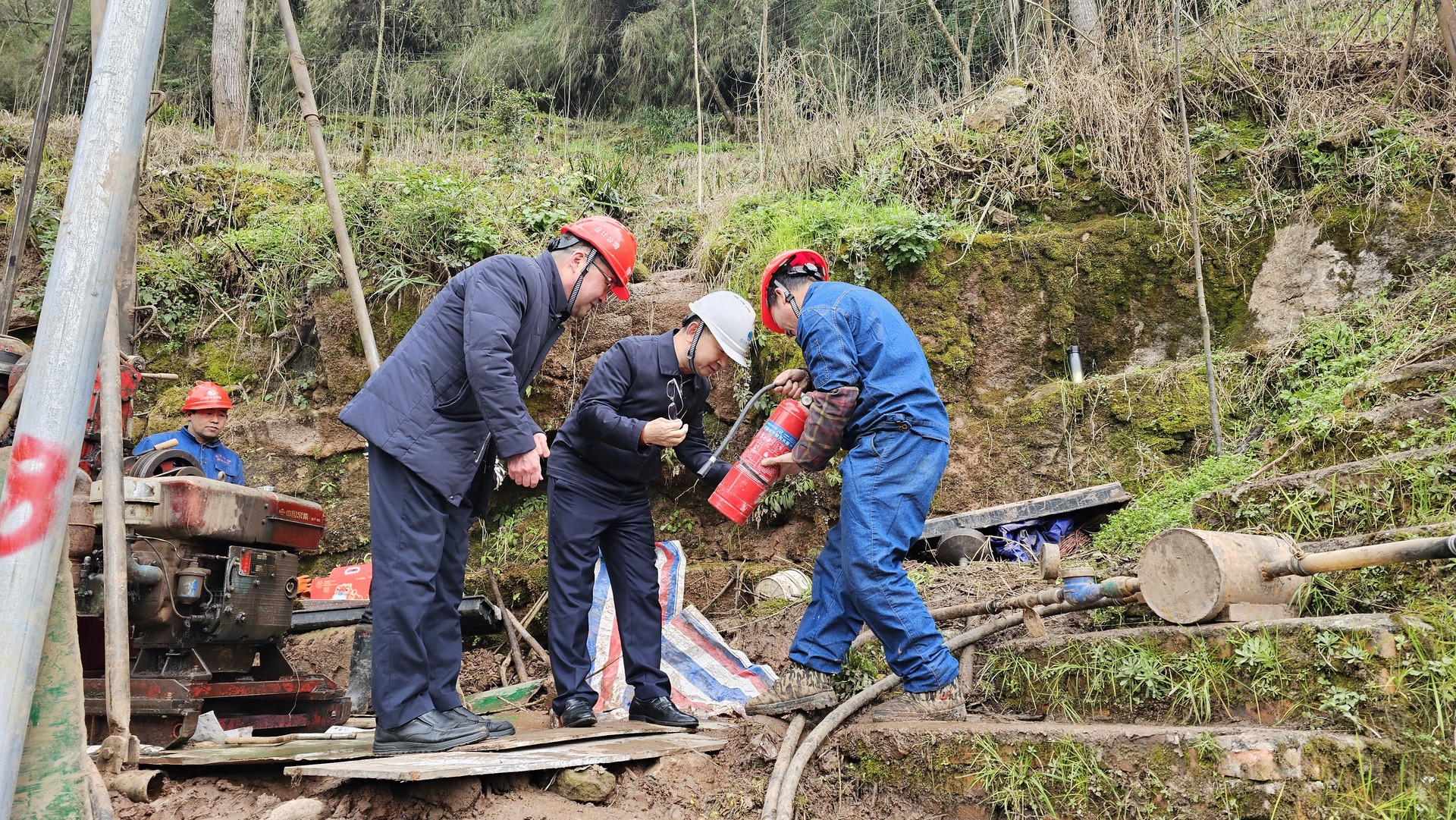 王華強調(diào),當下正處冬天干旱季節(jié),大家在做好自身安全防護的同時,一定要特別注意做好森林防火及其他安全工作,一定要做好施工現(xiàn)場環(huán)境保護,樹立良好的企業(yè)形象,確保年度工作順利收尾。在鉆探現(xiàn)場王華向艱苦奮戰(zhàn)在一線的工作人員送上節(jié)日的慰問和祝福。