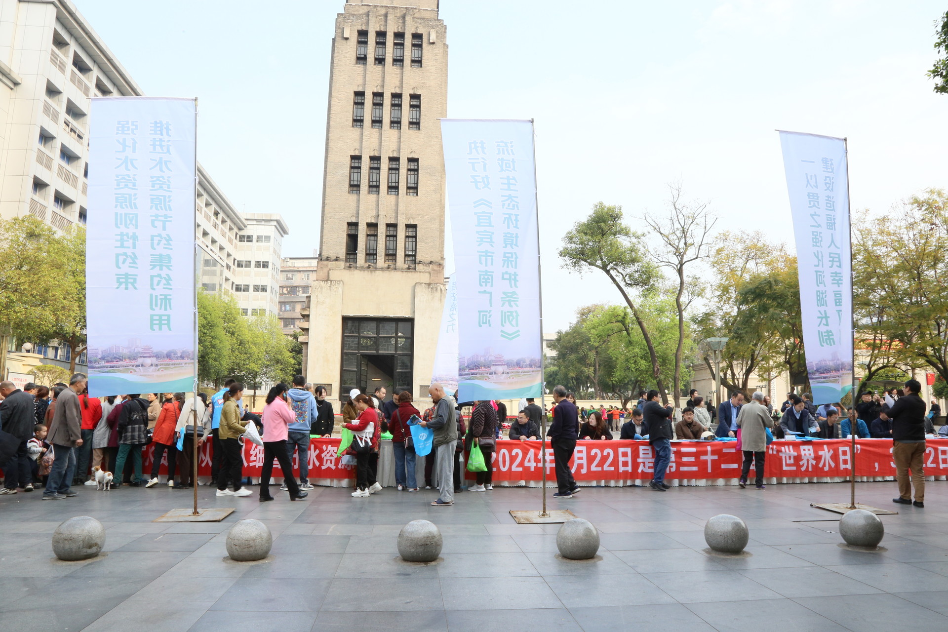 向家壩公司與宜賓市水利局聯(lián)合開展群眾性宣傳活動,在宜賓市翠屏區(qū)鐘鼓樓廣場,通過設點宣傳、懸掛宣傳條幅、發(fā)放宣傳手冊等多種形式,向市民宣傳水資源現(xiàn)狀、水資源保護的相關(guān)法律法規(guī)等內(nèi)容,提升市民節(jié)水用水意識。同時,在向家壩灌區(qū)工程施工現(xiàn)場、施工單位項目部等地,懸掛宣傳標語、張貼主題宣傳畫等,讓工地建設者積極行動起來,為高質(zhì)量建設向家壩灌區(qū)工程注入澎湃動力。