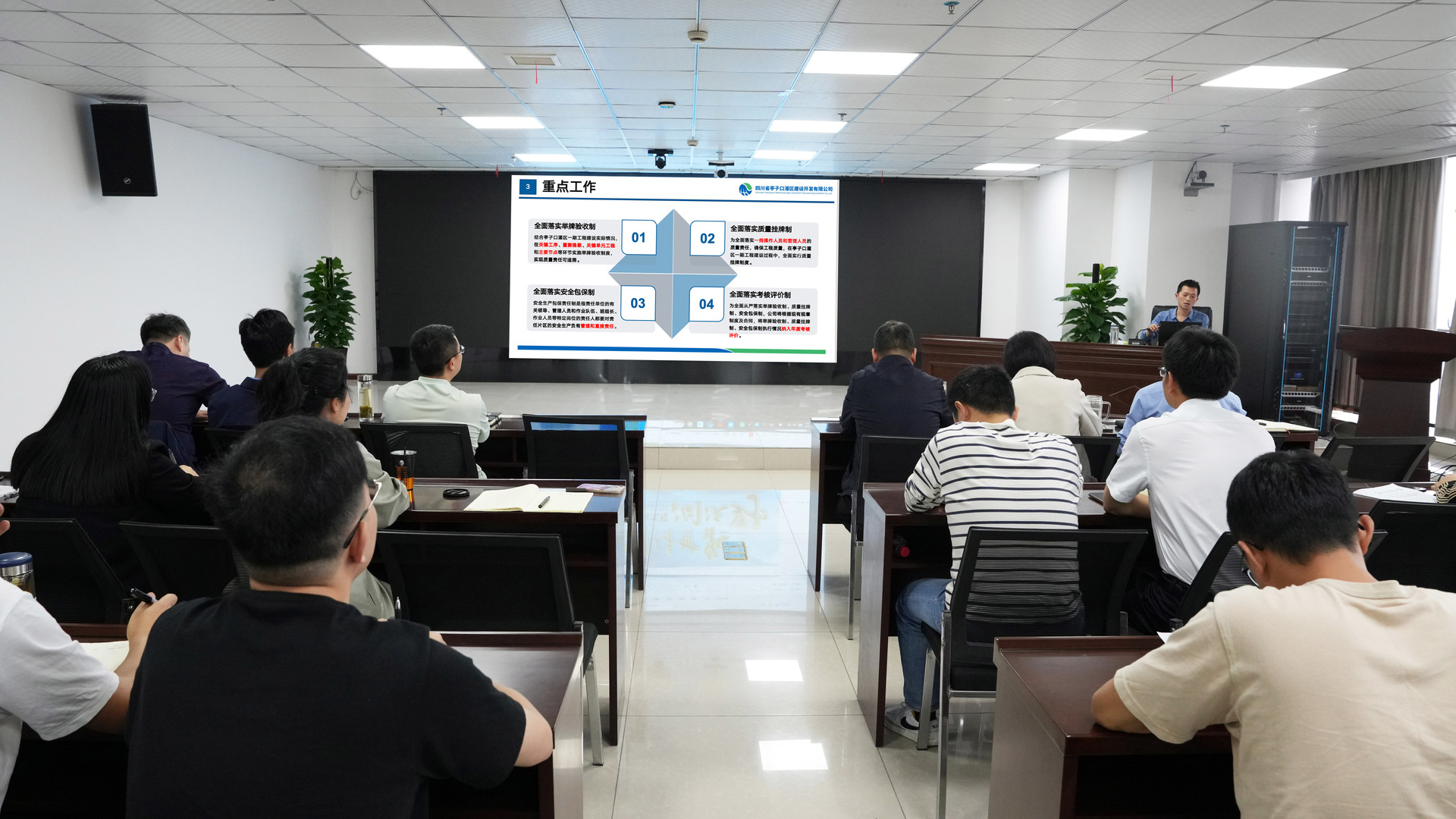 本次培訓會議在公司總部設(shè)主會場,建設(shè)管理現(xiàn)場部以視頻會議形式參會,全體干部職工參加會議。