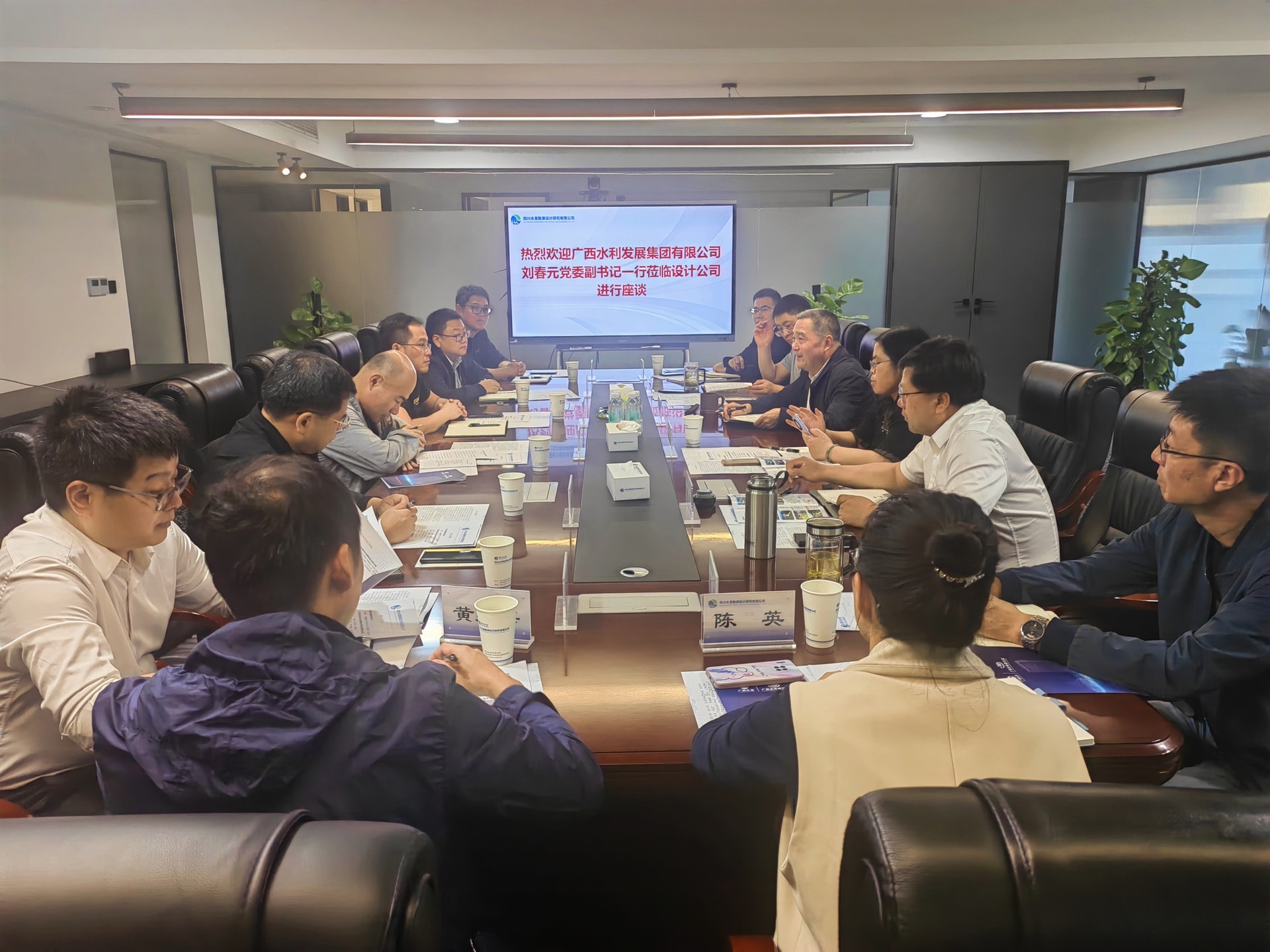 近日,廣西水利發(fā)展集團(tuán)有限公司黨委副書記、紀(jì)委書記、職工董事、工會主席劉春元一行蒞臨設(shè)計公司交流座談,廣西壯族自治區(qū)水利電力勘測設(shè)計研究院有限責(zé)任公司黨委書記、董事長、總經(jīng)理唐崗,黨委副書記、職工董事、工會主席歐輝明以及有關(guān)部門、分院負(fù)責(zé)人陪同參加。
