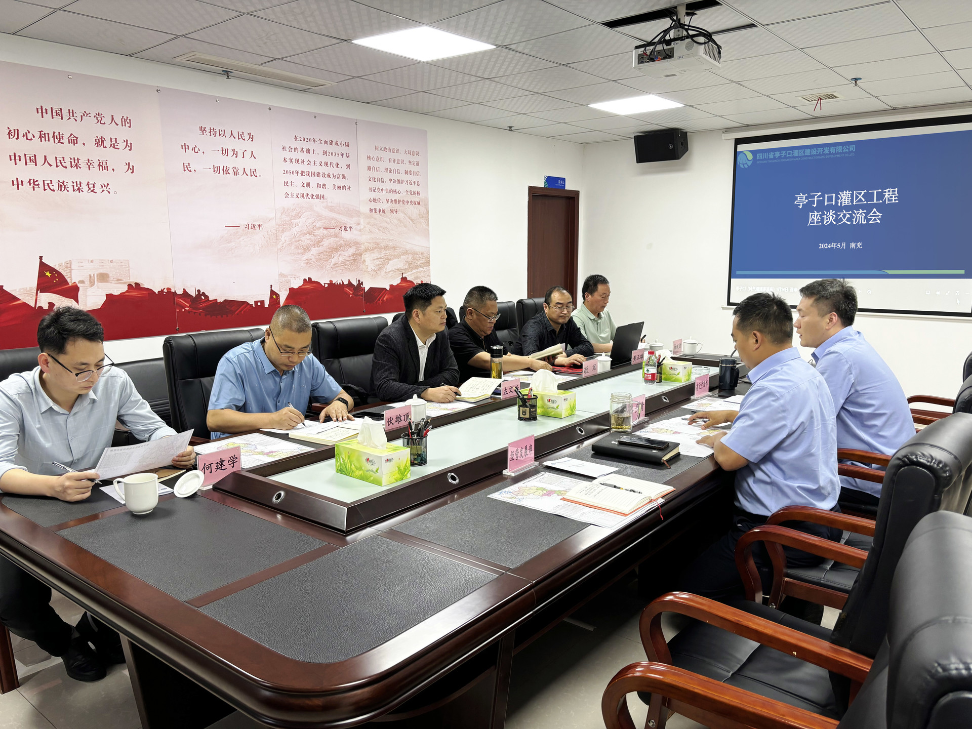 近日,廣元市劍閣縣水利局黨組書記、局長左文興一行赴亭子口公司,對接亭子口灌區(qū)二期工程前期工作及劍閣縣境內(nèi)項目規(guī)劃相關事宜。會議由公司黨委委員、副總經(jīng)理路長青主持。