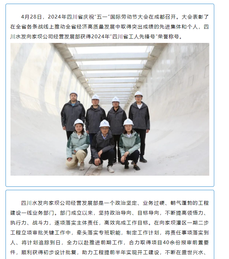 喜報!向家壩公司經營發(fā)展部獲得2024年“四川省工人先鋒號”榮譽稱號