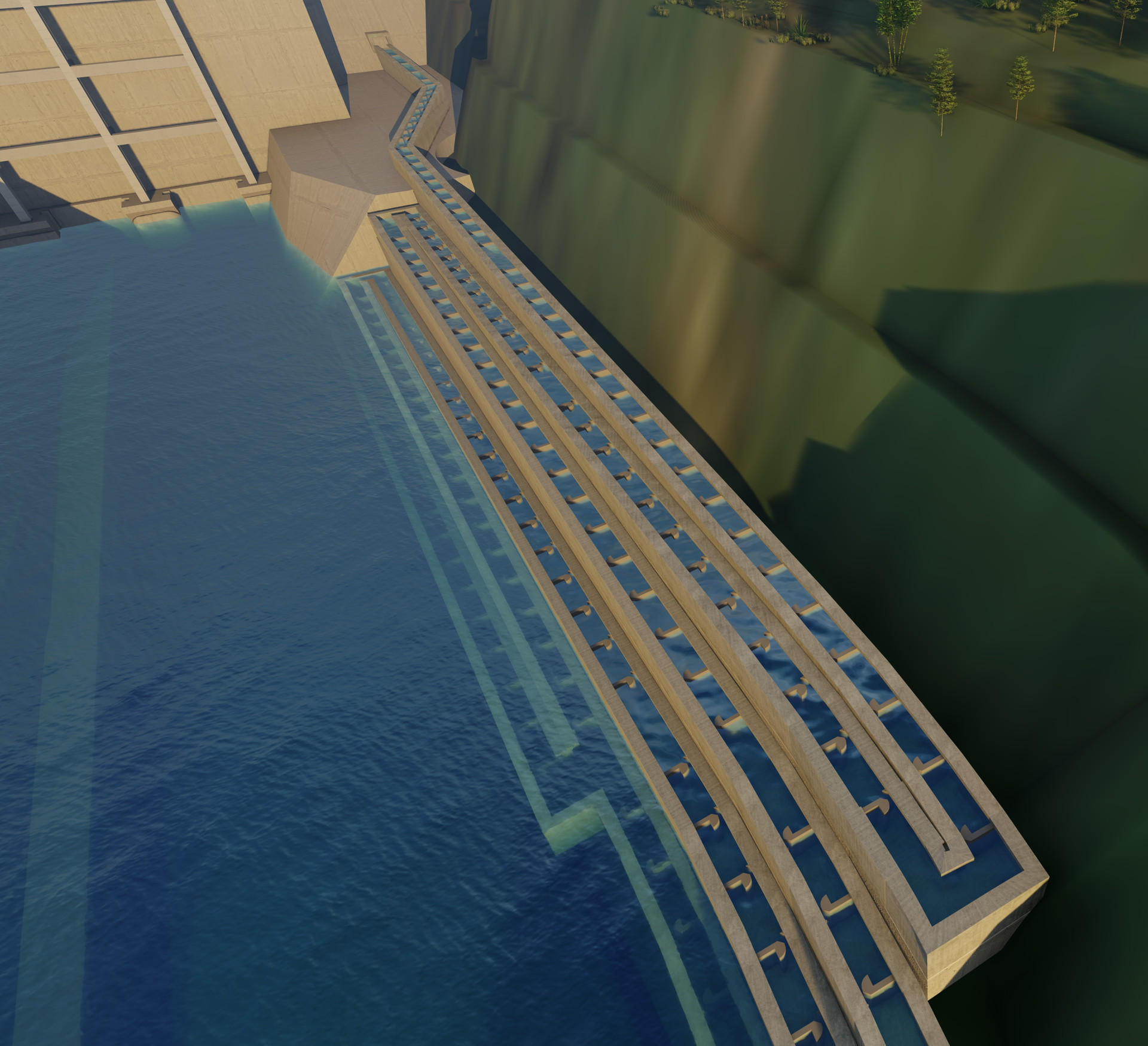 黃石盤水庫魚道工程采用了一種能夠適應庫水位變幅的升魚塔結(jié)構(gòu),該結(jié)構(gòu)已獲得國家實用新型專利。升魚塔結(jié)構(gòu)采用升船機的原理,自動控制升魚塔內(nèi)水位的自由升降,實現(xiàn)升魚塔內(nèi)水位與上游水庫任意水位銜接,達到了魚類通過升魚塔自由進入上游水庫的目的。