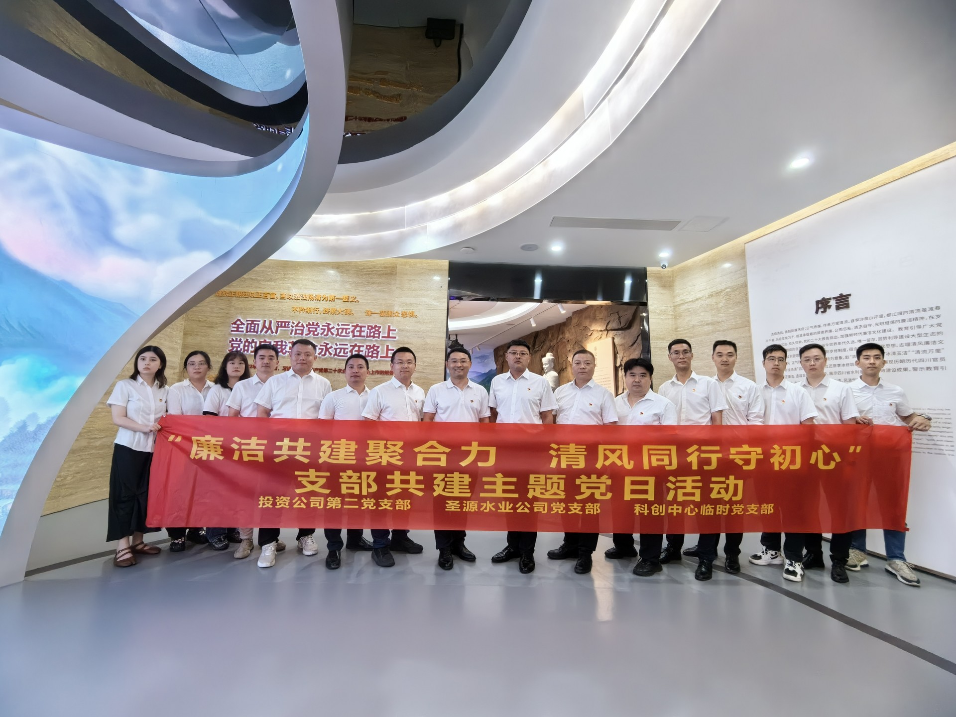 為落實公司黨委關(guān)于開展基層黨組織結(jié)對共建活動的有關(guān)要求,共同促進黨紀學(xué)習教育聯(lián)學(xué)共進,6月27日,投資公司第二黨支部、圣源水業(yè)公司黨支部、科創(chuàng)中心臨時黨支部帶領(lǐng)全體黨員赴四川省都江堰水利發(fā)展中心“古堰清風”廉潔文化館開展主題黨日活動。