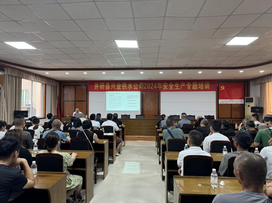 為深入學習貫徹落實黨的二十大精神和習近平總書記關(guān)于安全生產(chǎn)重要論述,不斷提升公司全員安全責任意識,筑牢公司安全供水防線。近日,投資公司下屬企業(yè)井研縣興業(yè)公司有限責任公司組織全體職工開展了2024年安全生產(chǎn)專題培訓活動,共計60余人參加培訓。