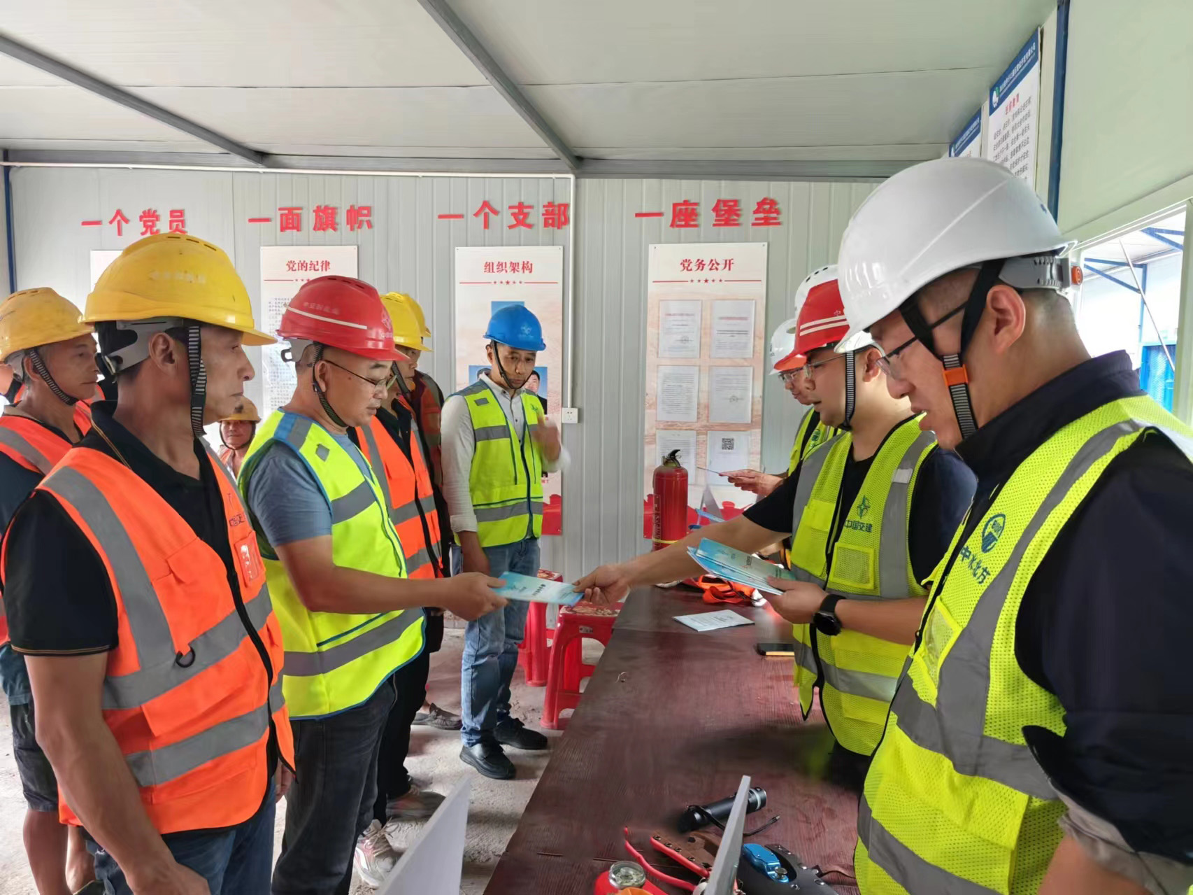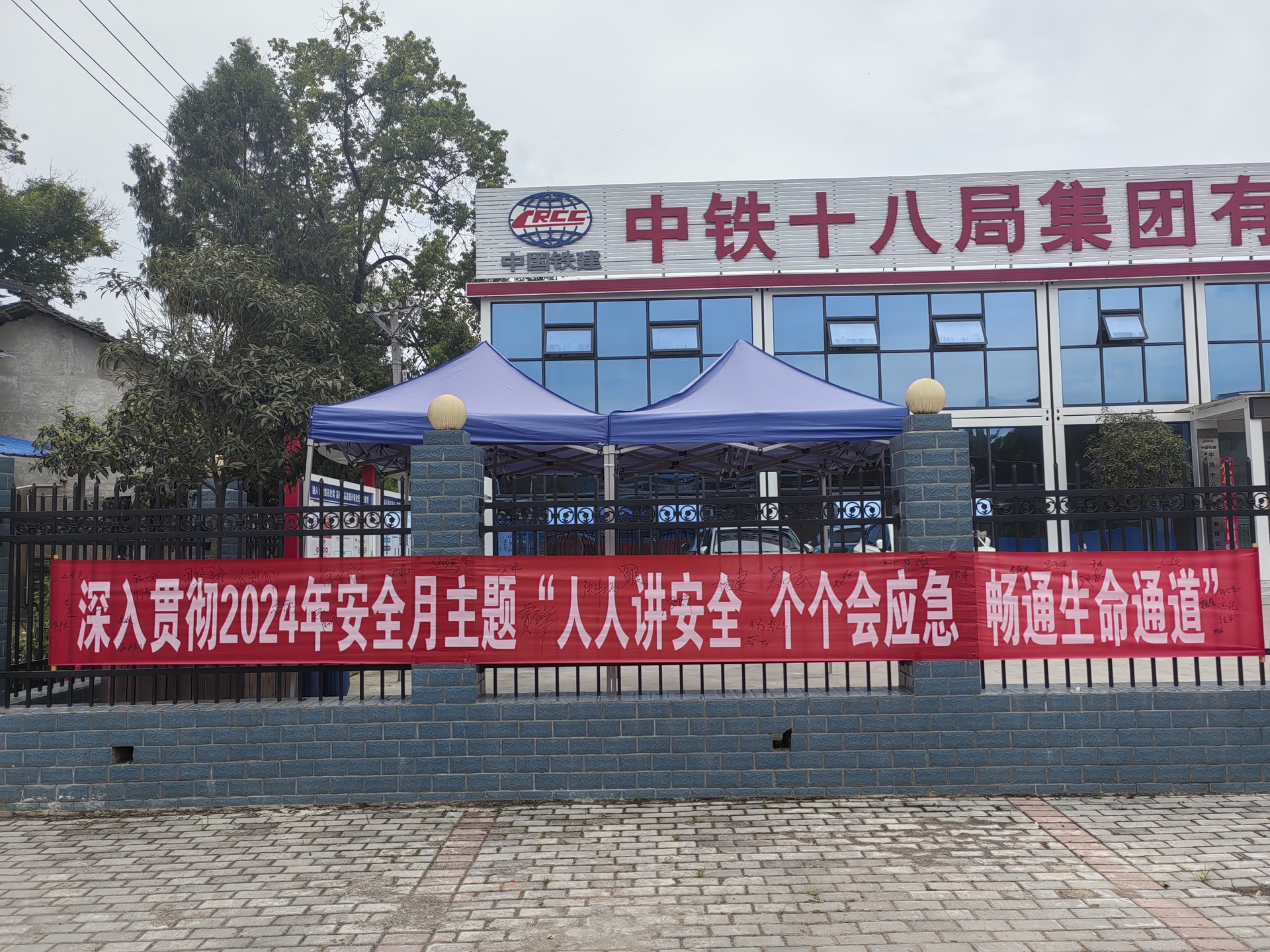 廣泛宣傳,營(yíng)造安全生產(chǎn)氛圍。在辦公駐地和施工現(xiàn)場(chǎng)設(shè)置安全宣傳欄、懸掛安全標(biāo)語(yǔ)、警示橫幅、制作安全宣傳畫(huà)報(bào),并常態(tài)化開(kāi)展班前講話(huà),將安全理念“聲”入人心。第IV標(biāo)段項(xiàng)目部組織業(yè)主單位、項(xiàng)目經(jīng)理、建設(shè)現(xiàn)場(chǎng)一線人員,在騎子寨施工現(xiàn)場(chǎng)開(kāi)展“安全宣傳咨詢(xún)?nèi)铡被顒?dòng)。通過(guò)發(fā)放安全應(yīng)急知識(shí)手冊(cè)等形式,向現(xiàn)場(chǎng)管理人員及一線工人宣傳安全應(yīng)急知識(shí)、科普安全生產(chǎn)、應(yīng)急避險(xiǎn)和自救互救、職業(yè)健康等方面的知識(shí),及時(shí)解答現(xiàn)場(chǎng)人員關(guān)心的安全生產(chǎn)問(wèn)題,營(yíng)造“人人講安全、個(gè)個(gè)會(huì)應(yīng)急——暢通生命通道”的良好工作氛圍。