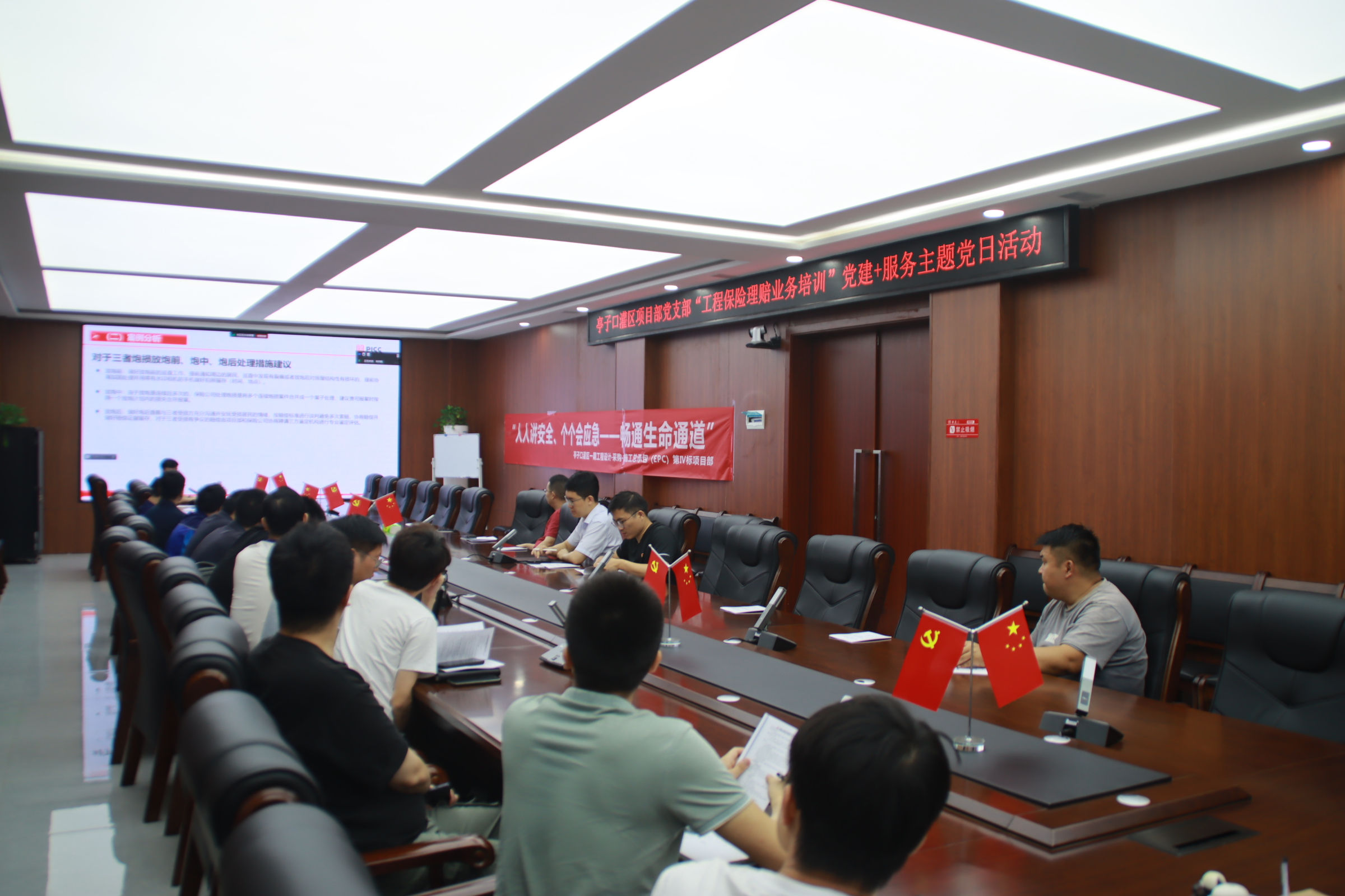 以培促學(xué),增強(qiáng)安全管理意識(shí)。第Ⅳ標(biāo)段臨時(shí)總支部組織開(kāi)展“工程保險(xiǎn)理賠業(yè)務(wù)培訓(xùn)”主題黨日活動(dòng)。活動(dòng)邀請(qǐng)成都人保專(zhuān)家,采取“線上+線下”同步進(jìn)行的方式舉辦專(zhuān)題講座,要求各施工單位踐行“防重于賠,防賠結(jié)合”理念,正確積極運(yùn)用好工程保險(xiǎn)為項(xiàng)目建設(shè)保駕護(hù)航的重要措施,強(qiáng)化安全風(fēng)險(xiǎn)分級(jí)管理和隱患排查治理,加大日常管控力度,從源頭上堅(jiān)決防范事故發(fā)生。在施工項(xiàng)目部開(kāi)展“班組長(zhǎng)講安全”專(zhuān)題交流活動(dòng),活動(dòng)現(xiàn)場(chǎng),優(yōu)秀班組分享了先進(jìn)管理經(jīng)驗(yàn),其他班組作表態(tài)方言。以一期工程典型質(zhì)量安全問(wèn)題教授管理方法,通過(guò)分享經(jīng)驗(yàn)做法,展示亮點(diǎn)特色,以案說(shuō)法的形式,變“廣播式”宣講為“浸潤(rùn)式”熏陶,強(qiáng)弱項(xiàng)、補(bǔ)短板、提水平,縱深推進(jìn)安全生產(chǎn)末端管理。