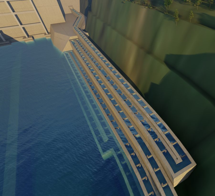 黃石盤水庫魚道工程采用了一種能夠適應(yīng)庫水位變幅的升魚塔結(jié)構(gòu),該結(jié)構(gòu)已獲得國家實(shí)用新型專利。升魚塔結(jié)構(gòu)采用升船機(jī)的原理,自動(dòng)控制升魚塔內(nèi)水位的自由升降,實(shí)現(xiàn)升魚塔內(nèi)水位與上游水庫任意水位銜接,達(dá)到了魚類通過升魚塔自由進(jìn)入上游水庫的目的。
