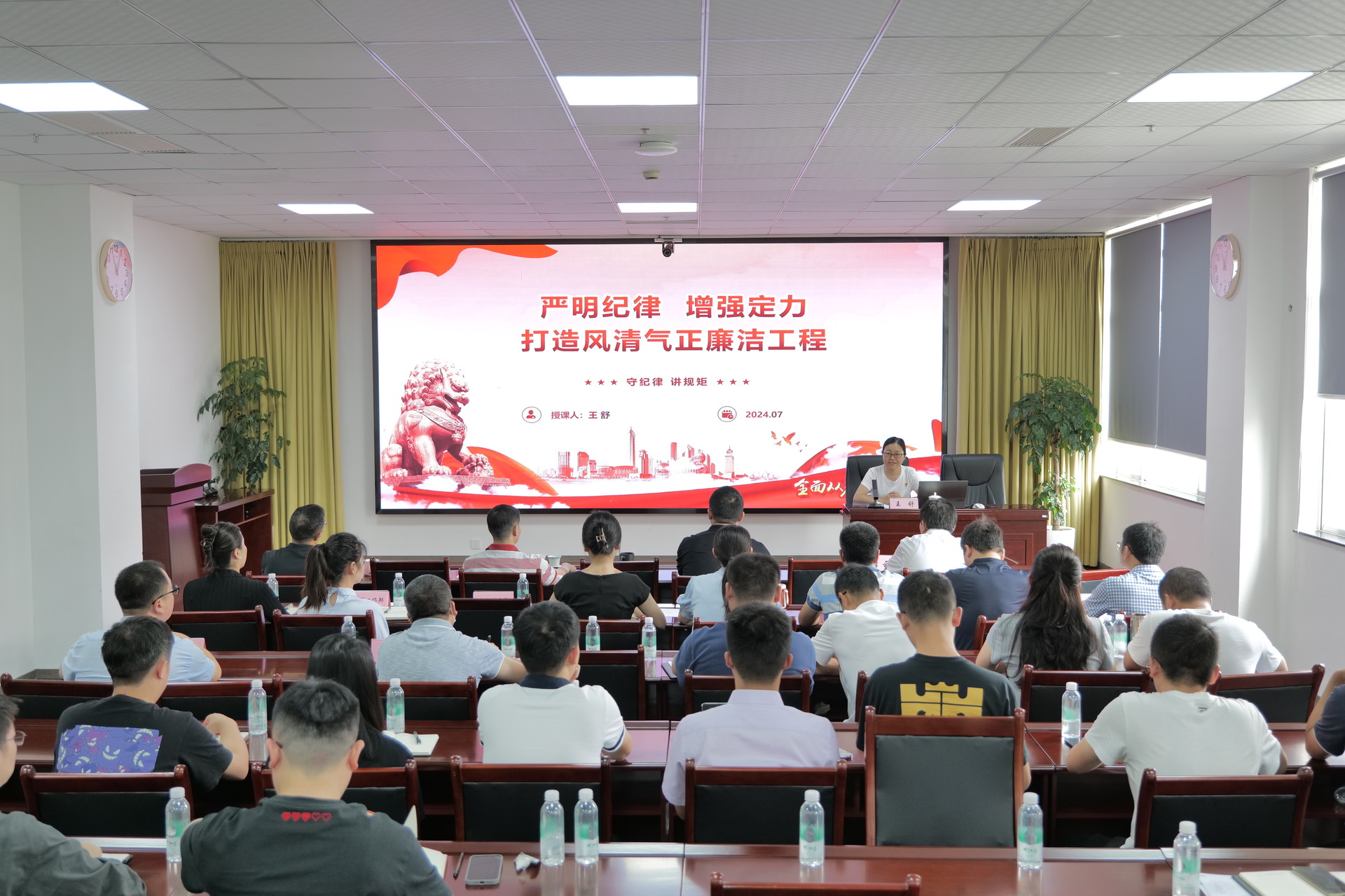 7月4日,集團副總經(jīng)理王舒到引大濟岷公司以《嚴明紀律增強定力打造風(fēng)清氣正廉潔工程》為題從理論學(xué)習(xí)錘煉黨性、嚴明紀律錘煉作風(fēng)、黨史中汲取力量三個方面,結(jié)合行業(yè)、公司特點,為公司全體干部職工上了一堂生動深刻的專題黨課。