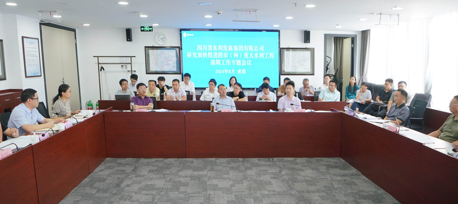 為全面落實全省水網(wǎng)建設(shè)規(guī)劃,搶抓重大歷史機遇,切實推動省級水網(wǎng)先導區(qū)建設(shè),8月19日,集團召開加快推進跨市(州)重大水利工程前期工作專題會,分析研判存在的問題,研究部署下步工作。集團黨委書記、董事長王華主持會議并講話,四川省水利廳督察專員白紹斌到會指導。