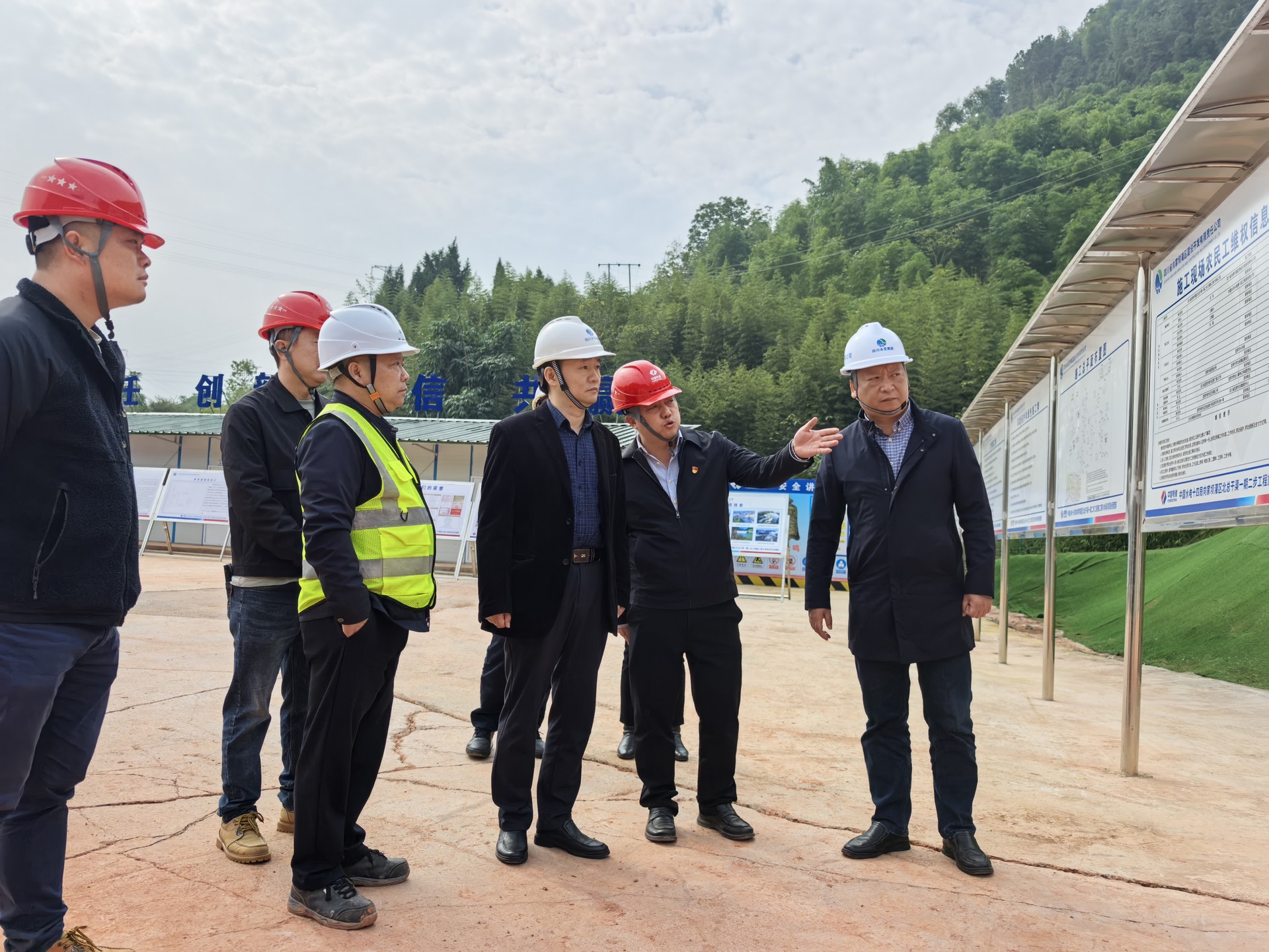 調(diào)研期間,吳軍一行首先前往了向家壩灌區(qū)北總干渠一期一步貓兒沱江底隧洞出口,實地查看了隧洞第一階段充水試驗的進展情況,并詳細(xì)詢問了信息化系統(tǒng)的安裝調(diào)試工作細(xì)節(jié)。隨后,調(diào)研組前往向家壩灌區(qū)北總干渠一期二步工程施工第Ⅲ標(biāo)段項目部的觀音堂隧洞施工現(xiàn)場,深入了解當(dāng)前的建設(shè)進度、安全生產(chǎn)措施落實情況以及黨員活動陣地的建設(shè)成果。
