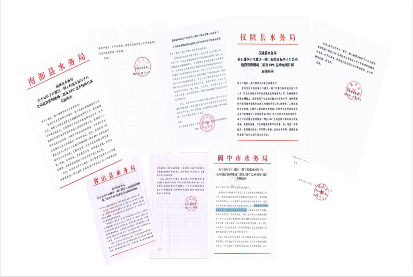 近日,亭子口灌區(qū)一期工程EPC第Ⅱ標(biāo)段項目部收到閬中市、儀隴縣、蓬安縣、南部縣、營山縣等五縣(市)水務(wù)局的聯(lián)合表揚。
