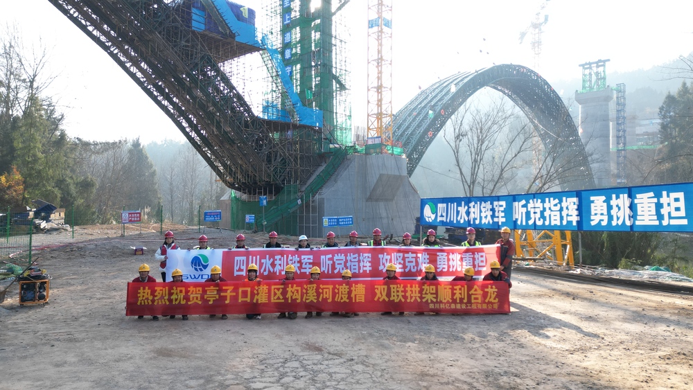 新年開新局,齊力創(chuàng)佳績。2025年1月16日上午10時,隨著鋼箱拱合龍段順利吊裝到位,由建設公司承建的亭子口一期工程第I標段構溪河渡槽雙連拱懸拼鋼拱架合龍成功,標志著渡槽工程建設取得了關鍵性進展,為后續(xù)的施工奠定了堅實基礎。